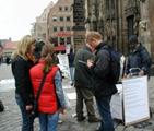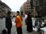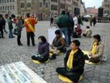 Le 18 mars 2006, les pratiquants du Falun Gong se sont rassemblés en face de l’église St Lawrence à Nuremberg dans le sud de l’Allemagne afin de protester contre les actes barbares du Parti communiste chinois (PCC) qui a établi un camp de concentration pour massacrer les pratiquants du Falun Gong et vendre leurs organes pour le profit. Les banderoles en chinois et en allemand ont exposé ces atrocités au monde extérieur. Le pratiquant de Falun Gong Zhang Yuan a entamé ce jour là une grève de la faim de 24 heures en signe de protestation.