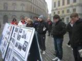 Des photos ont été affichées, ainsi que des banderoles avec les messages : ‘’ Soutenir les neuf millions de personnes quittant le PCC’’, ‘’ Une nouvelle Chine sans Parti Communiste’’, et ‘’ Premier ministre Goran Persson et le gouvernement: s’il vous plait, stoppez les assassinats dans le camp de concentration de Sujiatun en Chine’’,’’ Des milliers de pratiquants de Falun Gong du camp de concentration secret à Sujiatun en Chine, sont assassinés et leurs organes prélevés pour le profit, alors même qu’ils sont encore en vie.’’