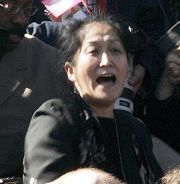 Le matin du 20 avril, Hu Jintao, le leader du parti communiste chinois, a rendu visite à la Maison Blanche. Au cours de la cérémonie de bienvenue sur la pelouse sud, une Chinoise est tout à coup apparue à côté d'une caméra qui filmait la cérémonie et a déployé une banderole jaune après le discours du Président Bush. Elle a également crié des messages en chinois et en anglais, « Falun Dafa est bon », et « Arrêtez la persécution du Falun Gong ». Son action courageuse a ébranlé tout le monde présent. Après une manifestation qui a duré plus de deux minutes, elle a été emmenée par le service de la sécurité.