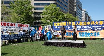 Dr. Li Dayong, président du Centre de service mondial pour démissionner du PCC et président de la Coalition mondiale pour amener Jiang en justice, a dit au rassemblement que les personnes qui avaient démissionné du PCC, étaient de tous les horizons. Il s’agit d’ouvriers, de fermiers, de policiers, d’avocats, de fonctionnaires, d’athlètes et même de soldats, d’agents du PCC et du personnel de la sécurité nationale. Une grande proportion de chinois a réalisé la mauvaise nature du PCC. Le PCC ne peut plus échapper à sa mort imminente.