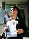 Linda Xu sort du Consulat chinois et accepte les interviews, après que sa demande de visa ait été rejetée. |