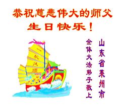 Tous les disciples de Falun Dafa de Laizhou, province du Shandong souhaitent un bon anniversaire au Maître !