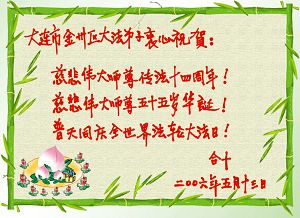 Les disciples de Falun Dafa du district de Jinzhou à Dalian souhaitent un bon anniversaire à notre grand Maître !
