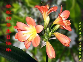 Tous les pratiquants de Falun Dafa du district de Dongxihu, ville de Wuhan souhaitent respectueusement au vénérable Maître un joyeux anniversaire!