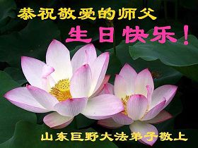 Les pratiquants de Falun Dafa de Juye, de la province du Shandong souhaitent respectueusement au vénérable Maître un joyeux anniversaire!