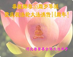Les pratiquants de Falun Dafa du comté de Jing, province du Hebei souhaitent respectueusement au vénérable Maître un joyeux anniversaire!