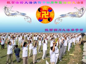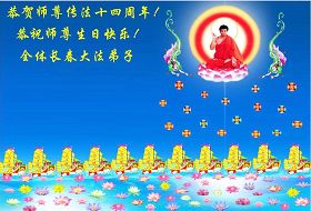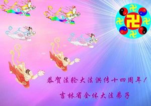 Tous les pratiquants de Falun Dafa de la province du Jilin souhaitent respectueusement au vénérable Maître un joyeux anniversaire et célèbrent le quatorzième anniversaire de l'introduction publique du Falun Dafa !