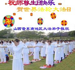 Les pratiquants de Falun Dafa du sud-est de la province du Shanxi souhaitent respectueusement au vénérable Maître un joyeux anniversaire et célèbrent la Journée mondiale du Falun Dafa!