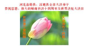 Tous les pratiquants de Falun Dafa des comtés de Wei et Zhuolu, province du Hebei souhaitent respectueusement au vénérable Maître un joyeux anniversaire et célèbrent le quatorzième anniversaire de l'introduction publique de Falun Dafa et la Journée mondiale du Falun Dafa!