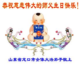 Les pratiquants de Falun Dafa de la ville de Longkou souhaitent respectueusement au vénérable Maître un joyeux anniversaire!