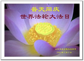 Tous les pratiquants de Falun Dafa du comté de Guan, province du Shandong souhaitent respectueusement au vénérable Maître un joyeux anniversaire et célèbrent la Journée mondiale du Falun Dafa !
