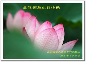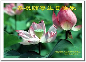 Les pratiquants de Falun Dafa de la ville de Shenyang souhaitent respectueusement à Maître un joyeux anniversaire!
