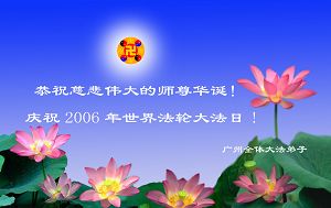 Des pratiquants de Falun Dafa de Hunan, actuellement à Foshan, Province du Guangdong présentent des voeux respectueux pour Maître pour son Anniversaire.