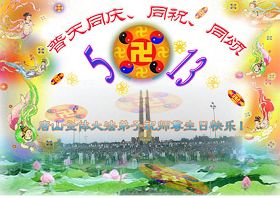 Des pratiquants de Falun Dafa de Qingdao présentent respectueusement des vœux de Bon Anniversaire au Maître Vénérable !