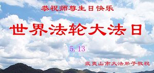 Des pratiquants de Falun Dafa de la ville de Wuyishan présentent leurs voeux respectueux au Maître pour son Anniversaire !