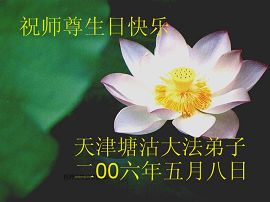 Des pratiquants de Tanggu, ville de Tianjin souhaitent respectueusement un Bon Anniversaire au Maître Vénérable et ils célèbrent le Quatorzième Anniversaire de la présentation du Falun Dafa au public.