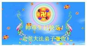 Les pratiquants de Falun Dafa de Dongwan souhaitent respectueusement au vénérable Maître un bon anniversaire !
