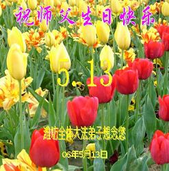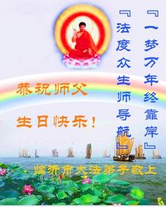 Les pratiquants de Falun Dafa de Chine continentale souhaitent respectueusement au vénérable Maître un bon anniversaire!