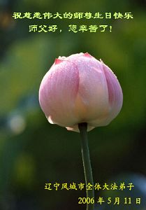 Les pratiquants de Falun Dafa de la ville de Fengcheng, de la province du Liaoning souhaitent respectueusement au grand et compatissant Maître un bon anniversaire!