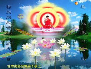 Tous les pratiquants du Falun Dafa du sud de Gansu souhaitent au vénérable Maître un bon anniversaire!