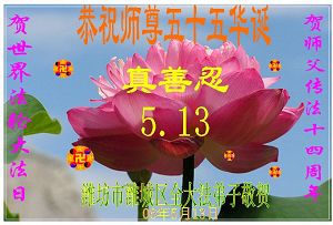 Les pratiquants de Falun Dafa de Weifang souhaitent au Maître un bon anniversaire!