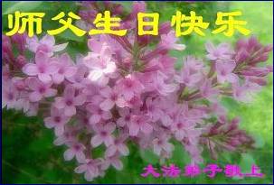 Au cours de ces dernières années de rectification de la loi, notre Maître grandiose nous a dirigés, s'est occupé de nous et nous a éveillé pour marcher sur le chemin de la rectification de la loi et mûrir jour après jour. Bien que nous ayons de nombreux défauts, nous allons faire plus d'efforts pour bien faire les trois choses. En éliminant tout ce qui est pervers, le PCC et tous les facteurs pervers endommageant Dafa et persécutant les pratiquants de Dafa, nous allons bien cultiver et sauver les gens de ce monde avec un coeur pur. Maître, reposez-vous tranquille ! Nous représentons tous les pratiquants emprisonnés illégalement dans des prisons, camps de travail, fermes de travail, centres de détention et classes de lavage de cerveau, nous envoyons nos vœux sincères au Maître – Joyeux Anniversaire ! Aussi difficiles que soient les conditions, ils vont se débarrasser des attachements humains, nier les arrangements des forces anciennes et éliminer les facteurs pervers, ils ne vont pas diffamer Dafa et le Maître. Nous, tous les pratiquants, allons bien coopérer, croire fermement dans le Maître et Dafa et bien faire chaque pas sur le chemin de la rectification de la loi. Heshi !