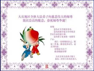 Tous les pratiquants de Falun Dafa à Daqing souhaitent au Maître un joyeux anniversaire