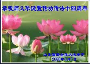 Tous les pratiquants de Falun Dafa de Linqing, province du Shandong, souhaitent au Maître un joyeux anniversaire et célèbrent le quatorzième anniversaire de l'introduction publique du Falun Dafa