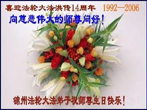 Les pratiquants de Falun Dafa de Jinzhou souhaitent au Maître grandiose un joyeux anniversaire !