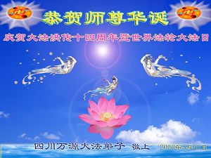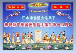 Les pratiquants de Dazhou, province du Sichuan, transmettent respectueusement leurs voeux à l’occasion de l'anniversaire du Maître vénéré ! Célébrer le 14ème anniversaire de l'introduction publique de Falun Dafa et la journée mondiale du Falun Dafa!