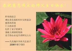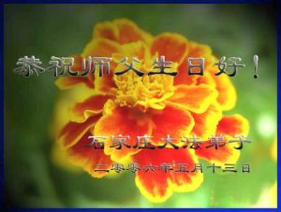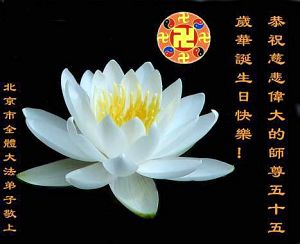 Tous les pratiquants de Falun Dafa de Beijing souhaitent avec respect un joyeux anniversaire au Maître!
