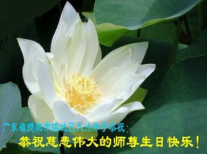 Les pratiquants de Falun Dafa du district de Rongcheng, ville de Jieyang, province du Guangdong souhaitent avec respect un joyeux anniversaire au grand Maître compatissant!