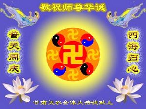Tous les pratiquants de Falun Dafa de la ville de Baozhong souhaitent avec respect un joyeux anniversaire au Maître vénéré!