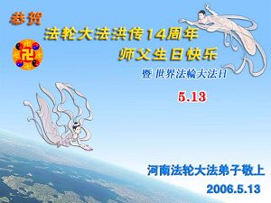 Les pratiquants de Falun Dafa de la province du Henan transmettent avec respect leurs vœux pour la journée du Falun Dafa et souhaitent un joyeux anniversaire au Maître!