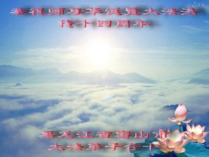 Tous les pratiquants de Weifang souhaitent avec respect un joyeux anniversaire au Maître et le félicitent pour le 14ème anniversaire de l'introduction publique du Falun Dafa !