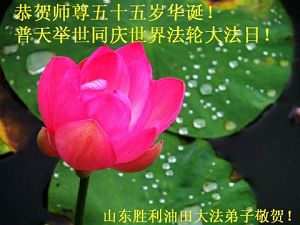 Les pratiquants de Falun Dafa du gisement de pétrole de Shengli, province du Shandong, souhaitent avec respect un joyeux anniversaire au Maître vénéré !