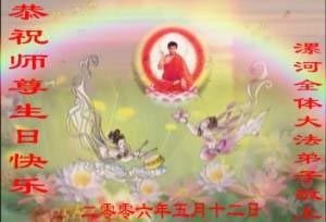 Tous les pratiquants de Changhaï souhaitent avec respect un joyeux anniversaire au grand Maître compatissant ! !