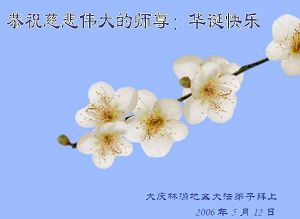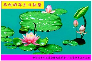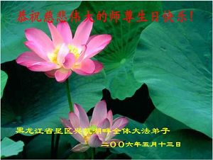 Les pratiquants de la région de Daqing souhaitent avec respect un joyeux anniversaire au Maître!