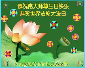 Tous les pratiquants de la ville de Tongliao, Mongolie Intérieure AR, souhaitent avec respect un joyeux anniversaire au grand Maître compatissant!