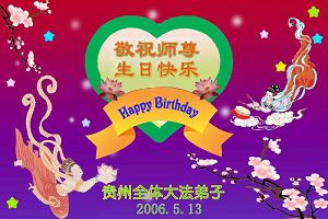 Tous les pratiquants de Falun Dafa de Chine Continentale souhaitent avec respect un joyeux anniversaire au Maître!