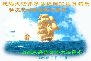 Tous les pratiquants de Falun Dafa du district de Huancui, ville de Weihai, souhaitent avec respect un joyeux anniversaire au Maître vénéré !