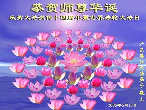 Les pratiquants des universités dans la province du Guangdong transmettent respectueusement leurs vœux à l’occasion du l'anniversaire du Maître vénéré ! Célébrer le 14ème anniversaire de l'introduction publique de Falun Dafa et la journée mondiale du Falun Dafa!