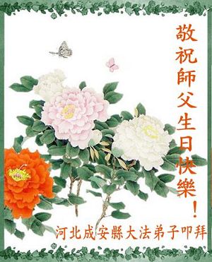 Les pratiquants de Falun Dafa de Shunyi, Beijing souhaitent avec respect un joyeux anniversaire au Maître!