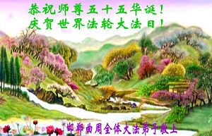 Tous les pratiquants du comté de Boye, province du Hebei, transmettent respectueusement leurs vœux à l’occasion du cinquante-cinquième anniversaire du Maître vénéré et le 14ème anniversaire de l'introduction publique du Falun Dafa