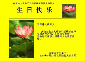 Les pratiquants de Falun Dafa de la région autonome de Mongolie Intérieure souhaitent avec respect un joyeux anniversaire au grand Maître compatissant !