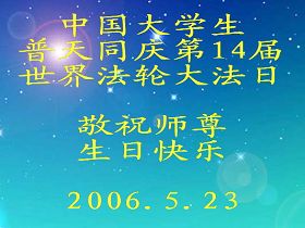 Les pratiquants de l’université de transport de Shanghai souhaitent respectueusement bon anniversaire au Maître et célèbrent le quatorzième anniversaire de la présentation du Falun Dafa au public et la journée mondiale du Falun Dafa!