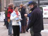 L’une d’entre elles était Mme Chen. Elle a dit : "La première fois que j’ai entendu parler des atrocités commises dans le camp de concentration du régime communiste chinois contre les pratiquants du Falun Gong, j’ai été extrêmement inquiète. Aujourd’hui je voudrais protester avec vigueur contre le pervers Parti communiste chinois en faisant vingt quatre heures de grève de la faim. Ces atrocités se produisent dans notre monde civilisé d’aujourd’hui. C’est une insulte à la race humaine et au monde entier. J’’espère que mes actions contribueront à éveiller la conscience des gens qui ont le sens de la justice afin que des mesures urgentes soient prises pour secourir les pratiquants du Falun Gong persécutés."