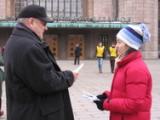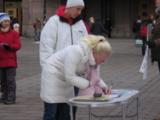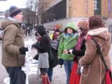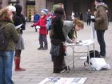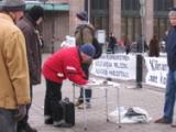 Quand les activités ont commencé, il faisait très froid et il y a eu un vent fort suivi par de la neige. Mais le mauvais temps n’a pas affecté l'intérêt des gens. On pouvait constamment entendre des expressions de soutien: telles que "Bravo ! " " Je vous soutiens ! " "Bonne chance ! " "Je voudrais avoir plus d’informations " "Comment puis-je vous aider ?" " Où puis-je apprendre le Falun Gong ? " Beaucoup de personnes ont pris les dépliants et signé notre pétition.