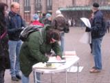 Un étudiant de l’Université d’Helsinki a parlé au Dr Li pratiquant de Falun Gong qui fait de la recherche à l’Université. L’étudiant a dit : " Cette affaire est vraiment mauvaise. Elle est trop cruelle. Mais je sais que le Falun Gong est très pacifique et ressemble au Tai Chi." Dr Li lui a parlé de l’éditorial d’Epoch Times " Les Neuf commentaires sur le Parti communiste" qui détaillent la nature perverse du Parti communiste. Dr Li lui a recommandé de le lire sur Internet afin de comprendre pourquoi le régime communiste chinois a commencé à persécuter le Falun Gong. L’étudiant a accepté la proposition et a signé la pétition.
