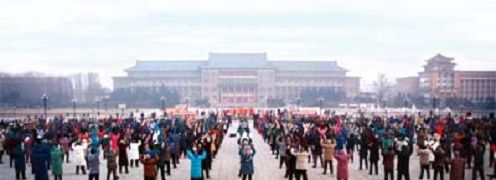 Le parc municipal de la culture à Changchun est à l’est et non loin de l’appartement de Maître. Ce parc est le plus grand pour les rassemblements dans la ville. Avant d’enseigner la Loi, Maître allait y pratiquer les exercices. (Photo 3) On dit que lorsque le parc a été rénové, on prévoyait de tout détruire pour le reconstruire à neuf. Le plan a ensuite été modifié, on a laissé intacts les arbres aux angles sud est et sud ouest – c’était les endroits où Maître pratiquait. Avant le 20 juillet 1999, plus de 10’000 pratiquants faisaient les exercices à ces endroits en groupe le matin. La scène vaste, l’atmosphère solennelle et le champ d’énergie rempli de paix et de compassion témoignaient du bien fondé de Falun Dafa, attiraient de nombreuses personnes qui avaient l’affinité prédestinée et qui ont aussi commencé à pratiquer Dafa. (Photo 4).
